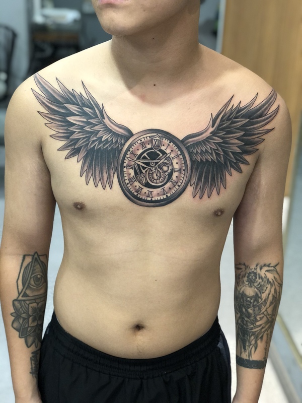 石狮般若纹身作品胸口刺青1